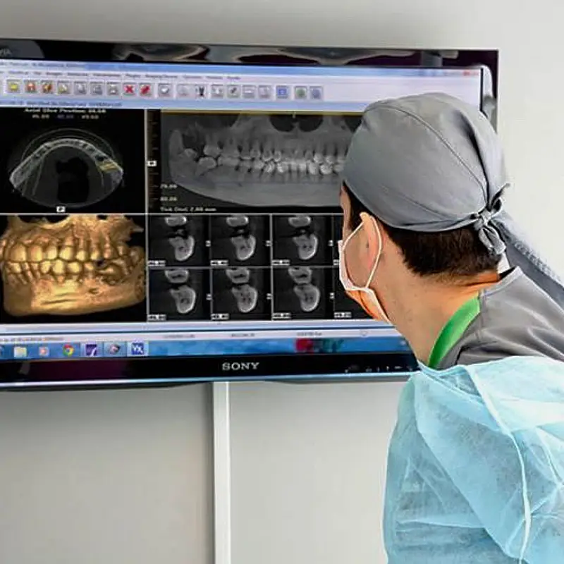 Cirugía guiada por ordenador con tomografía de maxilares.